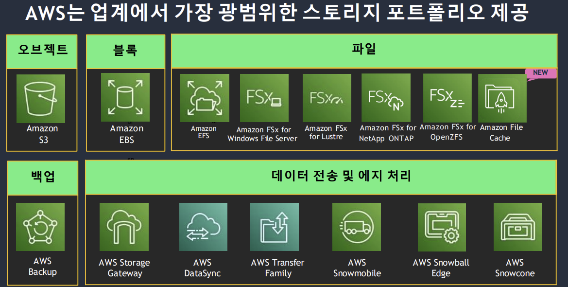 - 아카이브 및 장기 보관 → Glacier, Glacier Deep Archive.