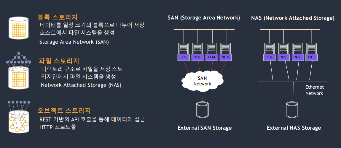 - 스토리지는 데이터를 저장하고 관리하는 공간