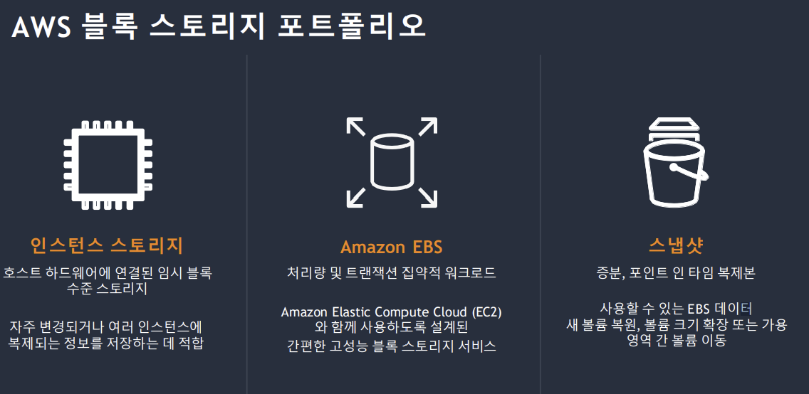 - EC2 인스턴스와 함께 제공되는 임시 블록 스토리지 (로컬 디스크)