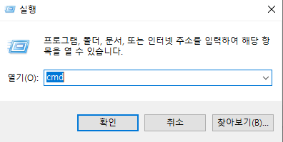 window+r 키를 눌르고 cmd를 입력하면 명령 프롬프트 창이 열린다.