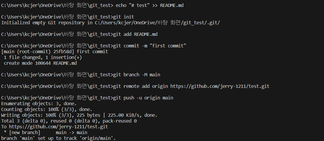 내 컴퓨터 바탕화면에 git_test 폴더를 만들었다.