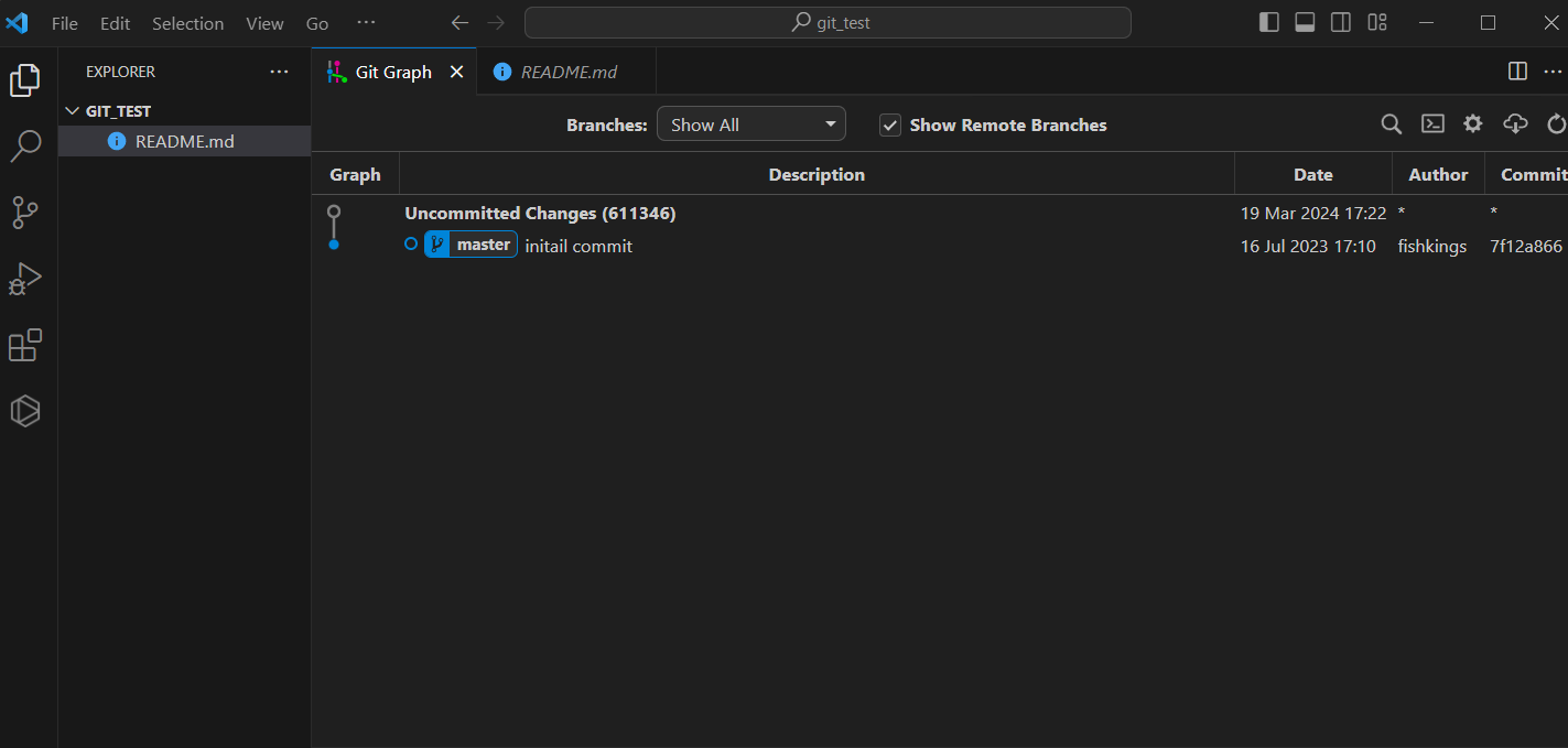 그런 다음 visual studio code에 들어와 git graph 툴로