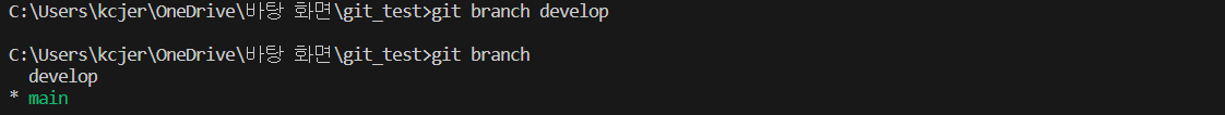 git branch develop 명령어를 통해 develop 브랜치를 만들었다.