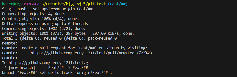 git push --set-upstream origin Feat/## 명령어를 쓰면 된다.
