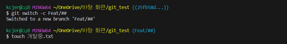 VS Code 터미널에 git switch -c Feat/## 을 하여