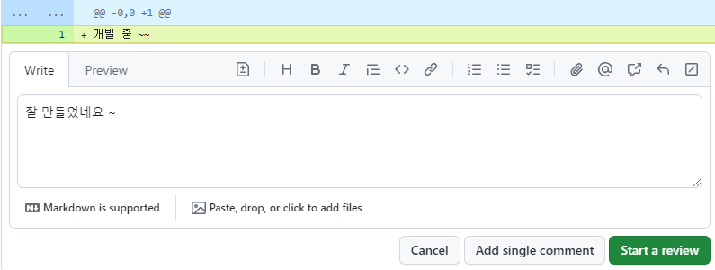 팀원들은 File changed로 들어가 코드 리뷰를 해준다.