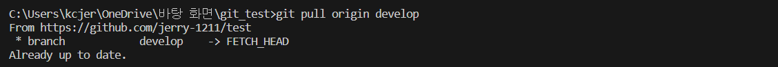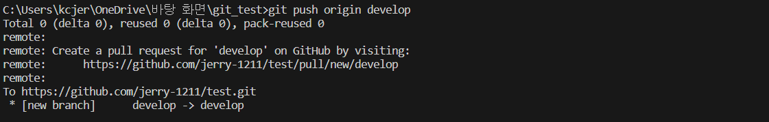 그리고 git branch를 통해 develop 브랜치 생성된거를 확인했다.