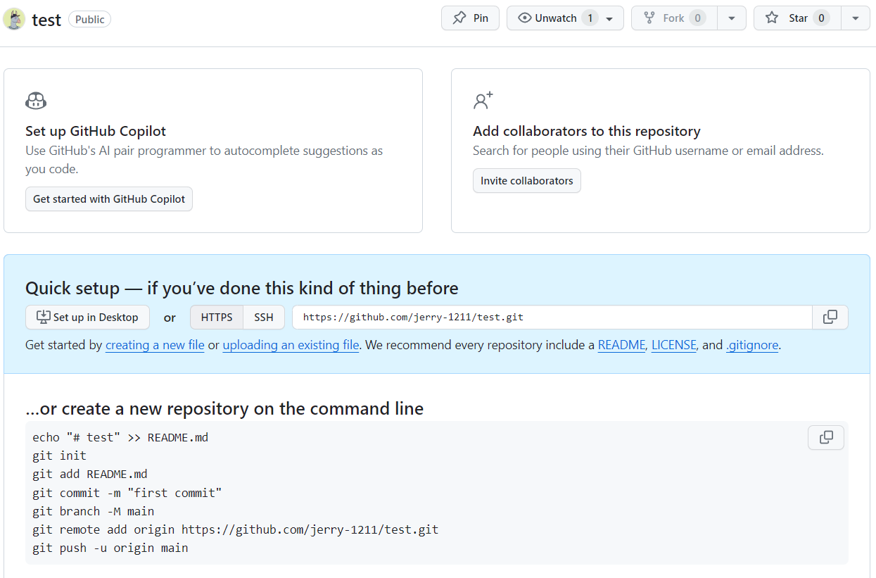...or create a new repository ~~ 코드 부분을 복붙하고