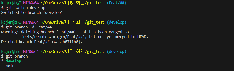 Feat/## 브랜치에서 다른 브랜치로 이동하고 삭제를 해주었다.