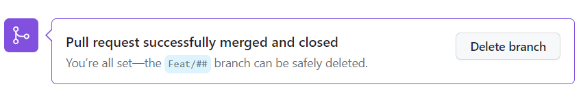 브랜치를 확인해보면 Feat/## 가 삭제 된 것을 확인 할 수 있다.