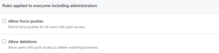 push 권한이 있는 사용자에게 강제 푸시를 허용 (강제 푸시는 손상위험 있음)
