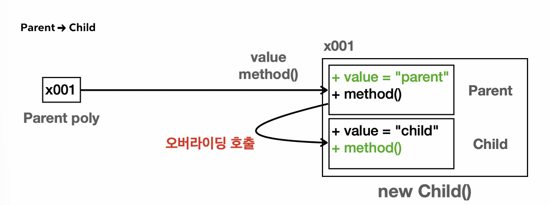- 결국 methodCommon( )은 하위 타입인 Child에서 오버라이딩 됨