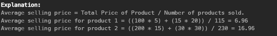 CASE WHEN SUM(U.units)<>0 THEN ROUND(SUM(P.price * U.units)/SUM(U.units),2) ELSE 0 END AS average_price