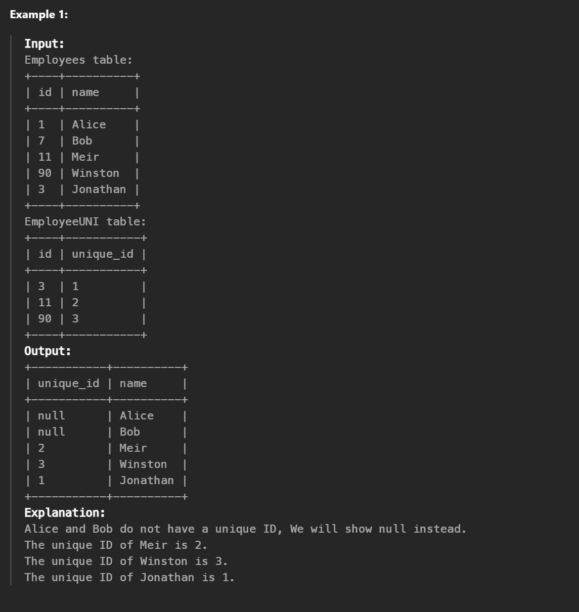 FROM Employees e LEFT JOIN EmployeeUNI eu ON e.id = eu.id