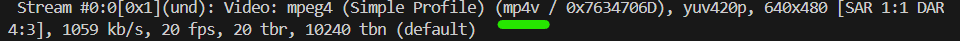 그리고 mp4 확장자로 동영상 파일을 얻기위해 , 위와 같은 파라미터를 주었다. (20 fps, (640*480px))