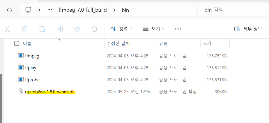 좀 전에 다운 받은 ffmpeg 폴더 안의 bin 파일에 위와 같이 넣어주면 된다.
