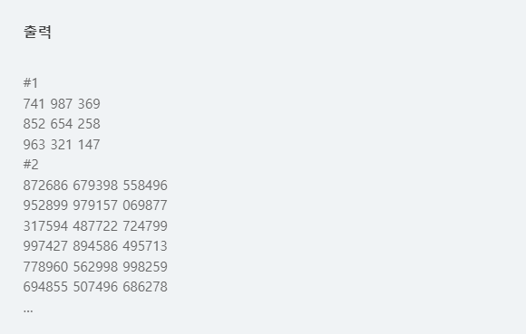 다음 N줄에 걸쳐서 90도, 180도, 270도 회전한 모양을 출력한다.