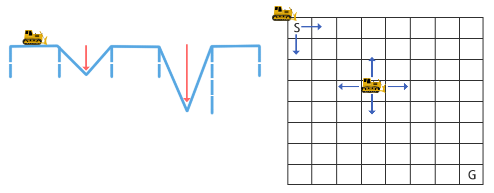 출발지는 좌상단의 칸(S)이고 도착지는 우하단의 칸(G)가 된다.